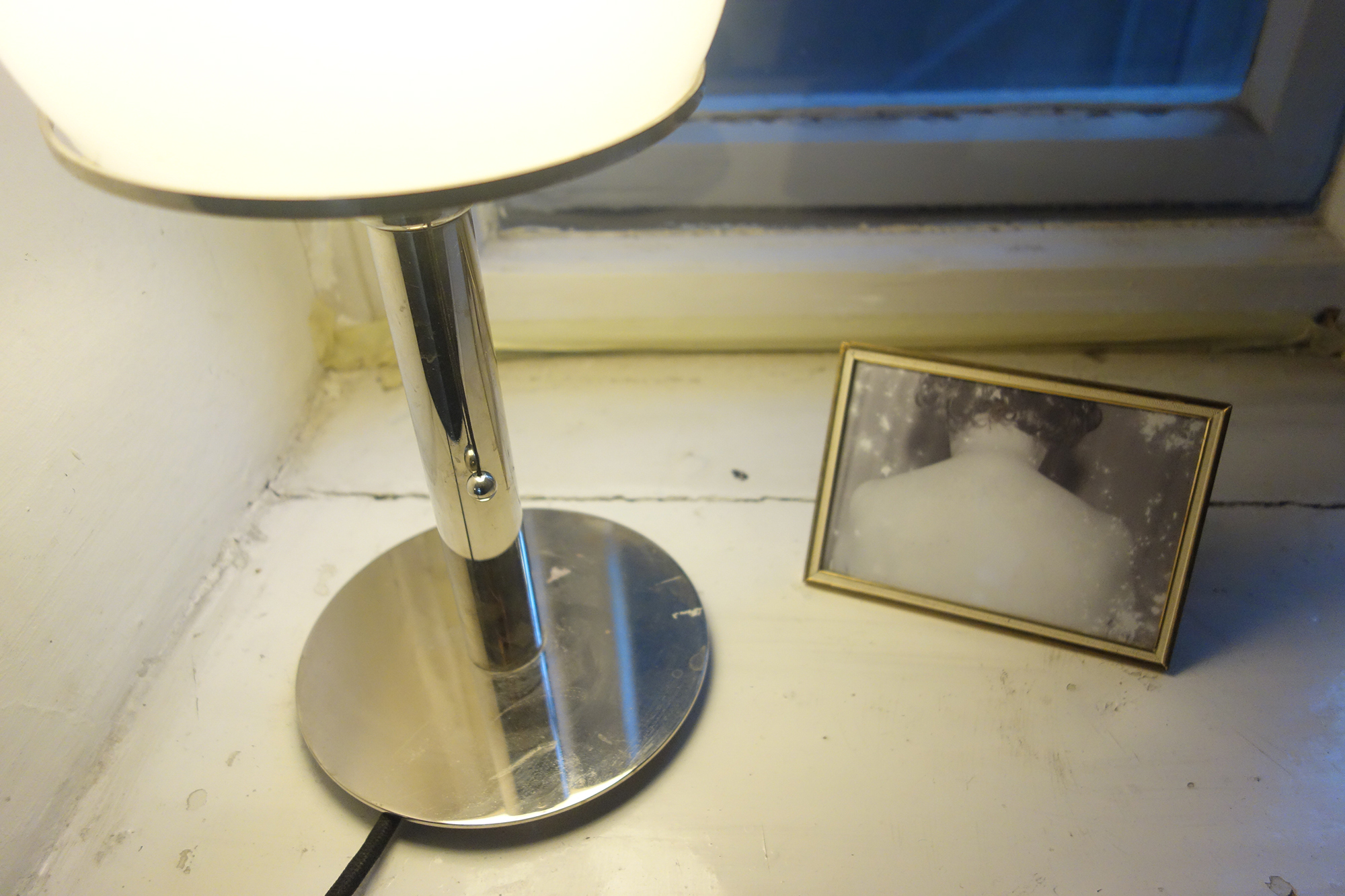 "The little red light, long and vertical, watched over the room like a mute menace."