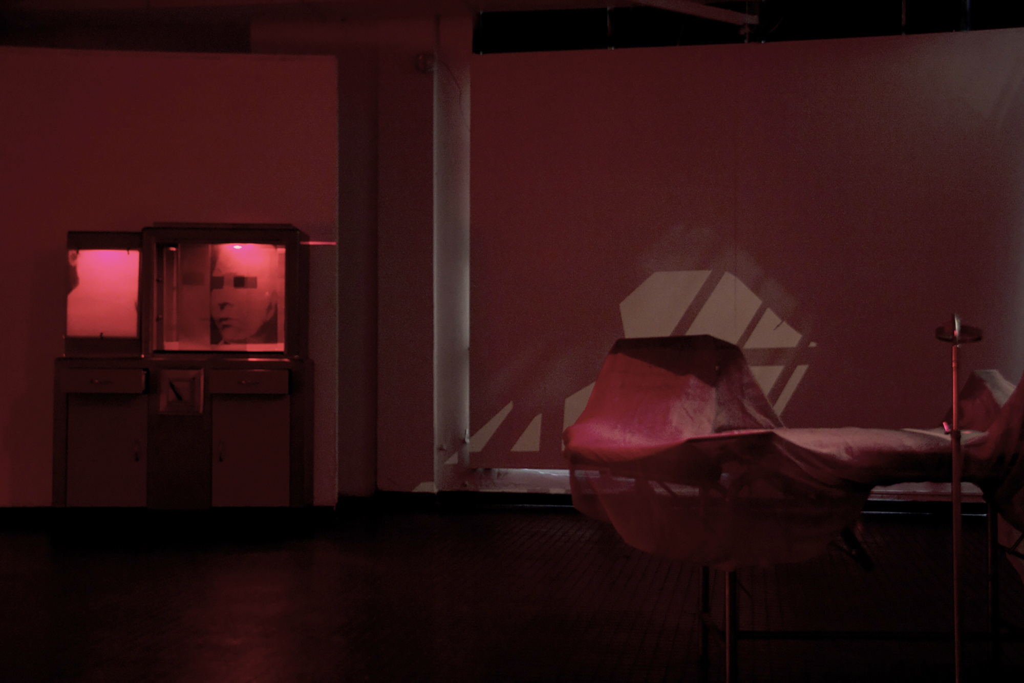 He organizes small intimate situations where medical artifacts intervene, a climate in which tension is the key that the artist intelligently orchestrates, without sparing us discomfort.
