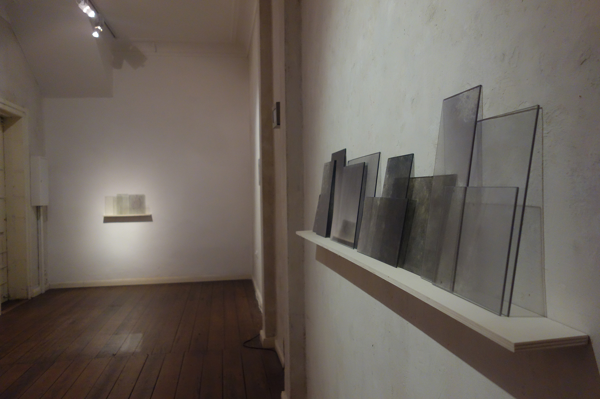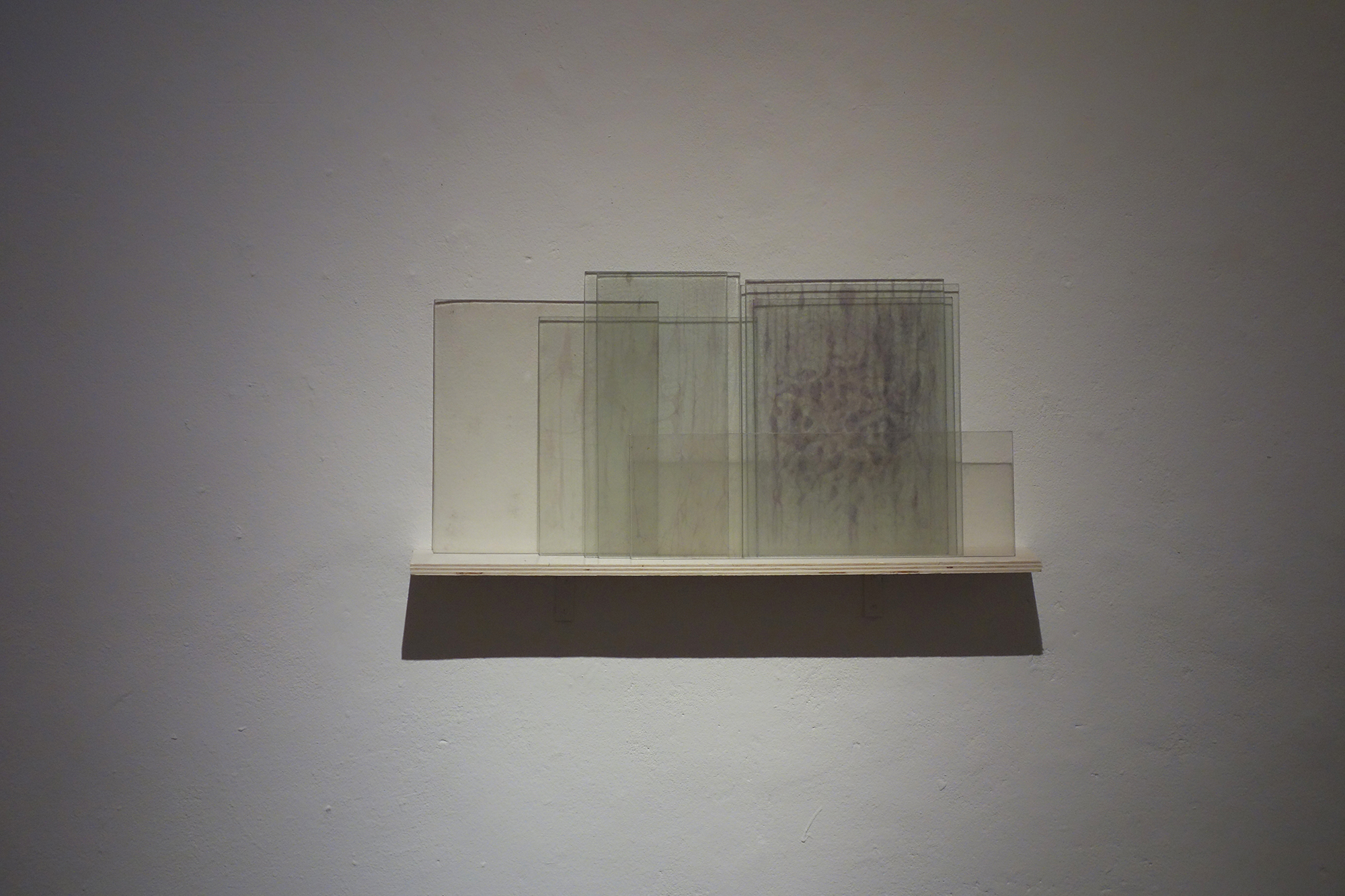 The installation Narbe consists of slides from the past of different people and from medical files printed on glass. The passage of time and conservation conditions generate layers of fungi (active and mutated) that prohibit the visibility of the image while being integrated as an intrinsic part of it. The work is a sum of layers where mushrooms appear that are a disease of celluloid, in turn fused with the disease of the body and the marks that the space where the piece is located may have. The support is fragile and gives an account of the condition of vulnerability of the personal memory and of the sick people before the objectivation of the scientific gaze and its consequent social control.